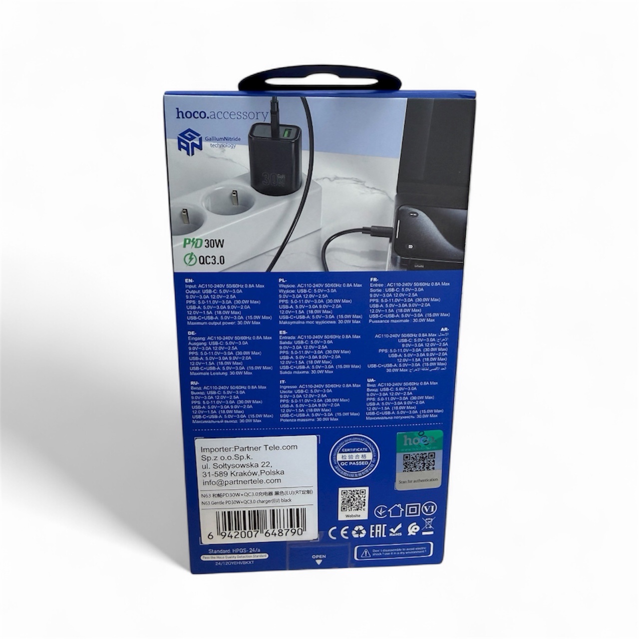 Alege **Hoco N63** daca vrei un incarcator complet, rapid si fiabil, gata de utilizare imediat!