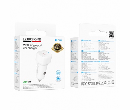 Incarcatorul auto Borofone BZ34A Cloud ofera o incarcare rapida si sigura de pana la 20 W prin portul USB-C, fiind ideal pentru telefoane,