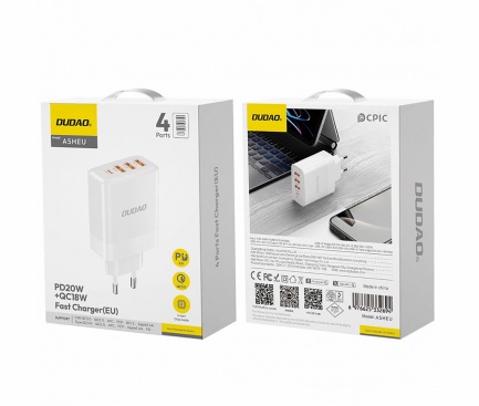 Incarcator Retea Dudao A5HEU, 20W, 3A, 1 x USB-C – 3 x USB-A, Alb
